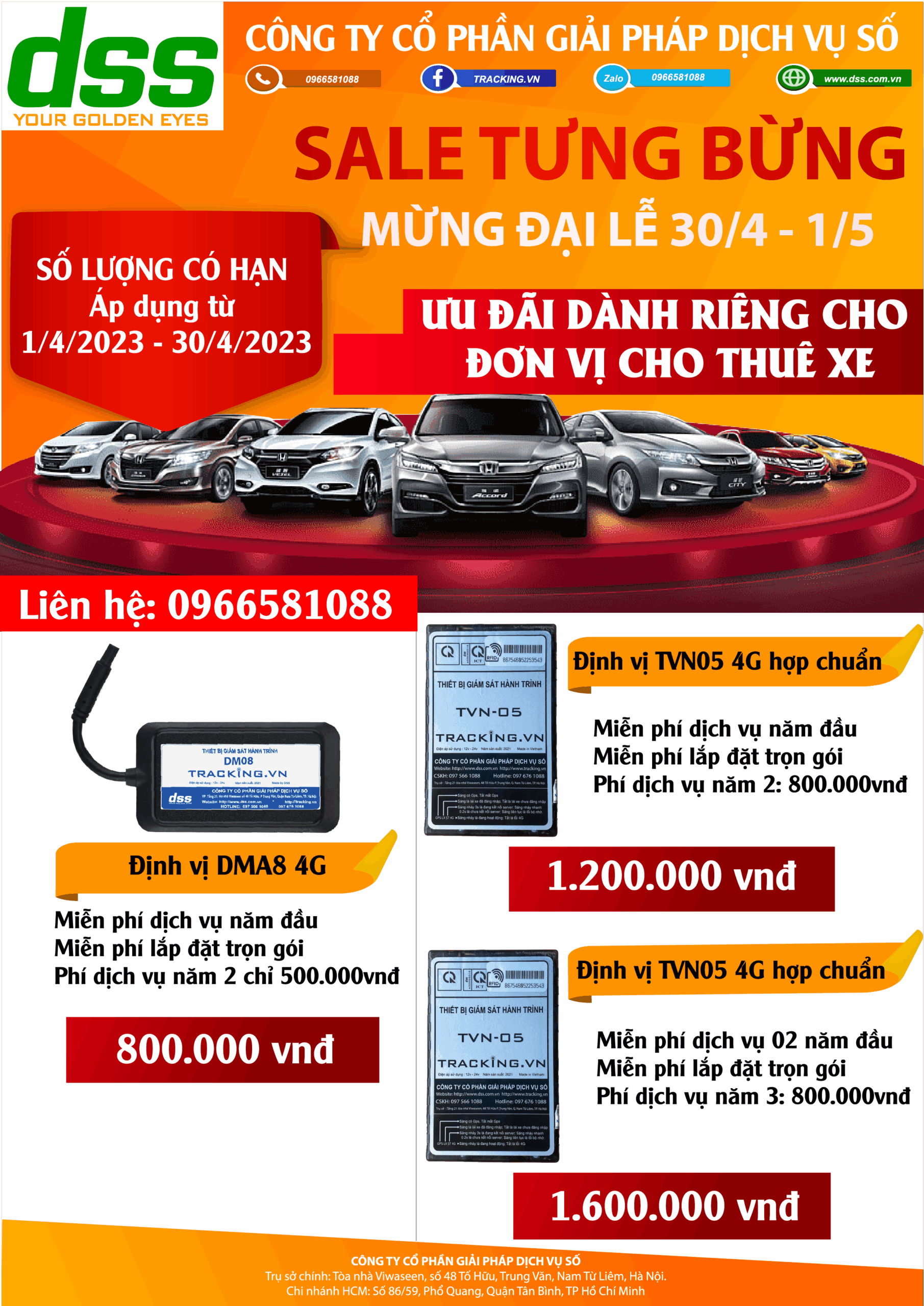 Chào mừng đại lễ 30/4 -1/5, DSS tung ra gói ưu đãi dành riêng cho các đơn vị cho thuê xe tự lái với mức giá vô cùng hấp dẫn. Chuyển đổi càng nhiều, chiết khấu càng cao, nhanh tay liên hệ để được nhận ưu đãi, số lượng có hạn (*)!